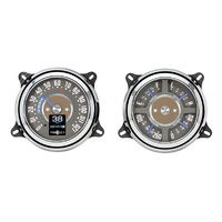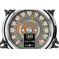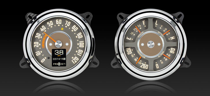 Stunning dual-round arrangement features chrome-plated billet aluminum bezels with a decidedly stock look! The OEM-styled 120mph speedometer is not alone; there’s bar-type tachometer nestled inside the sweep, giving you a fully functional instrument system without disturbing the vintage vibe. A single TFT message center brings up additional data for those who need just a little more!