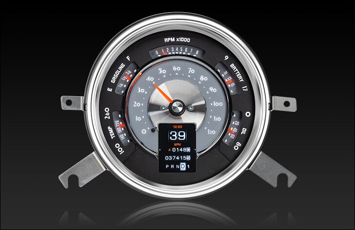 How about a direct-fit instrument upgrade that looks stock, comes with a chrome plated, billet aluminum bezel, and will talk to nearly any drivetrain combination in your 1949-50 Ford car? After studying up on the design of the stock gauge, we went to work marrying the look with a full color TFT message center, LED backlighting and spun up an aluminum housing to keep it all together. The result is decidedly stock, yet modern in all the right places.