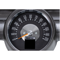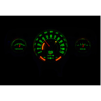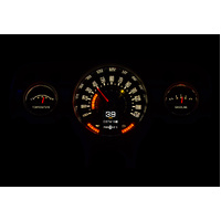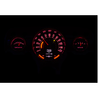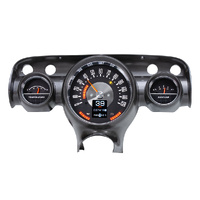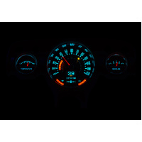 Looks like a stock cluster with just three gauges, but in fact there are six readings! The tach, oil pressure and voltage are made up of hidden LED bars, only visible when the key is on. A large TFT message center is front and center while the rest of the system looks straight out of 1957. Fits into your original cast housing; chrome rings available separately, as is the matching RLC-57C clock.