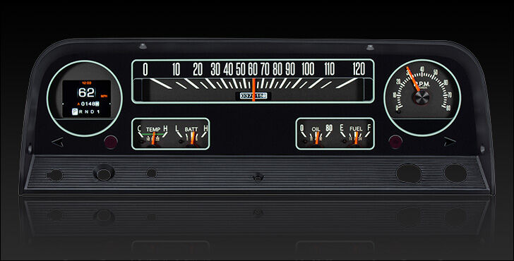 You can stop searching for a factory tach cluster for your 1964-66 C10. The RTX-64C-PU offers the vintage look you want with modern capabilities you need. Boasting a 2.4” TFT message center on the left, you can add just about any additional information you like, while the analog tachometer on the right lets you keep an eye on the revs. A small display in the center contains a simulated tumbler odometer. System requires stock or reproduction bezel for installation, not supplied. Does not fit GMC.