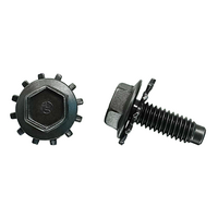 Authentic copies of the original. These are the most commonly used bolts on all Fords, virtually used throughout car but most visible on fenders. HTS, External star washer, Phosphate & Oil, Black finish, 5/16-18 X 15/16 inch long, 7/8 inch O.D. Concourse correct.