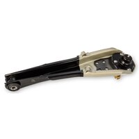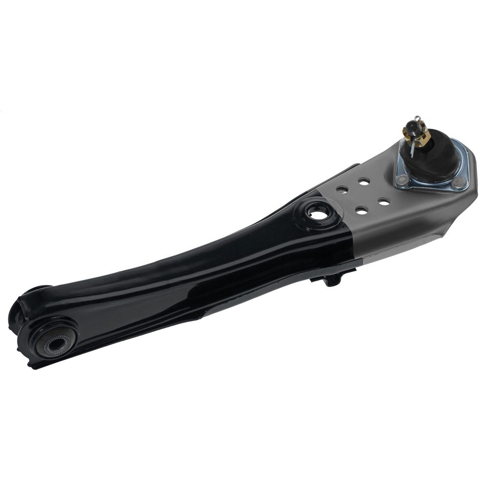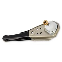 These lower control arms are authentic reproductions. 1964-67 feature the original riveted design, lower jacking tabs and 2-tone paint. Comes complete with balljoint, pressed in bushing, grease seal, zerk fitting, washer, nut and cotter key. Painted black and natural steel grey.