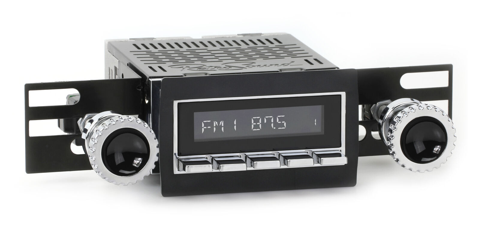 The RetroSound® Redondo-RS radio is the perfect solution for select 60s-70s Mopar, Ford, and Volkswagen vehicles with period-correct knobs and classic push-buttons. The Redondo-RS has an independent display, control shafts, and push-button assemblies allowing each component to be adjusted to achieve the perfect fit.