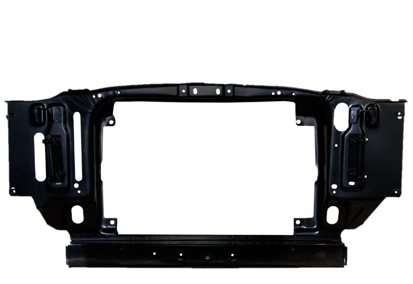 This 1969 Mustang Radiator Support with Lower Cross Member is stamped from heavy gauge steel and lacquered black for corrosion just like the originals. Lower front Cross Member is already attached with factory spot welds which is a real time saver during installation.
