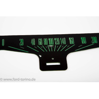 1.5mm thick plastic speedometer overlay with 200 KPH scale. This green version is slightly flourescent.