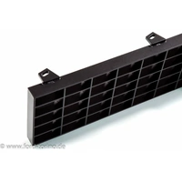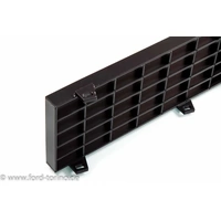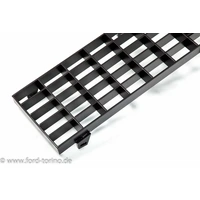 The grille is made out of 0.12 inches (3mm) aluminium and powder coated in black. The front is black for the badass look! The flaps / egg crates are made out of Aluminium, too