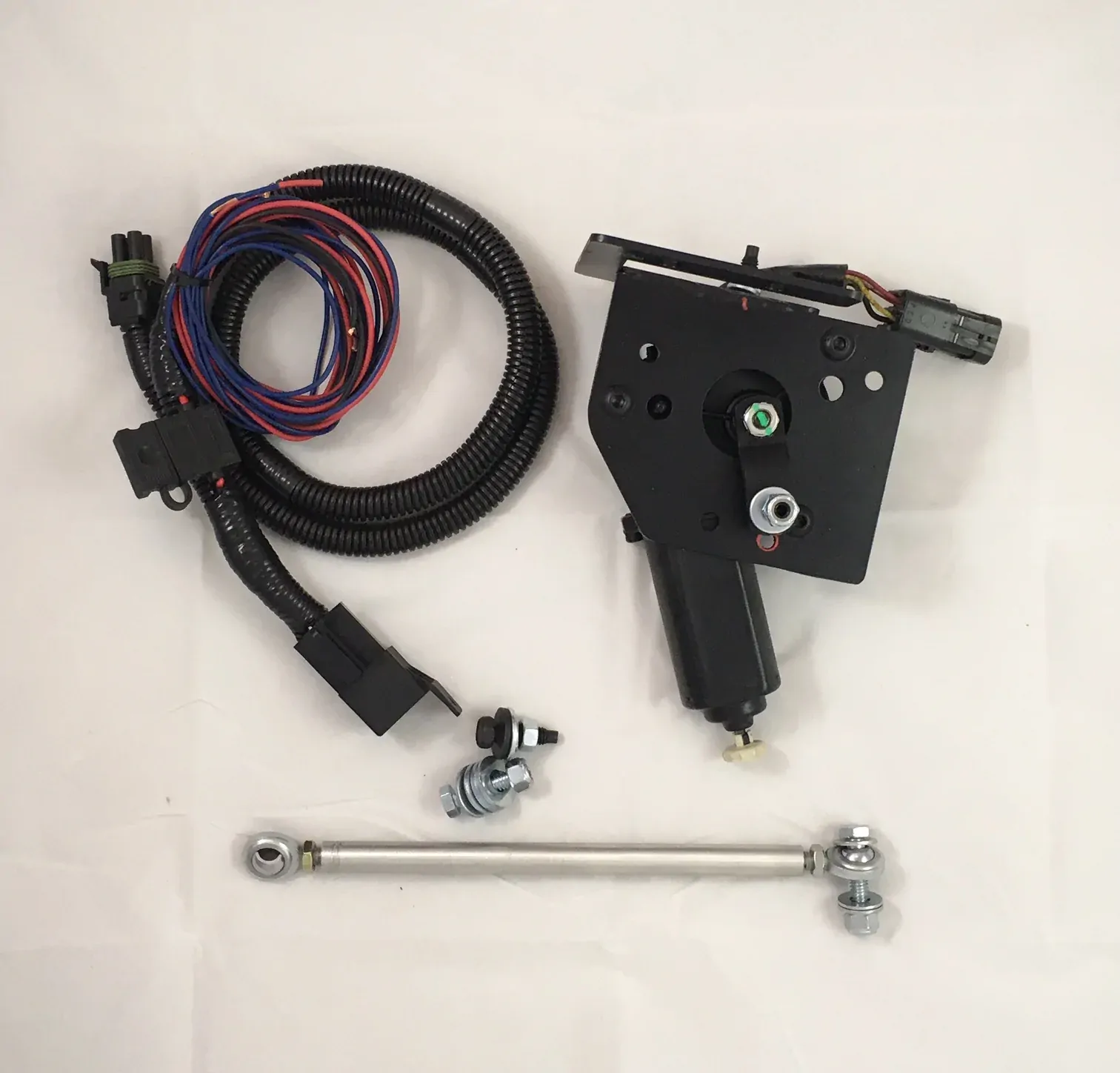 The kit consists of a new CNC laser cut mount, complete with a new motor. This kit has a tapped motor with button head bolts and a custom adjustable arm. The kit is complete and ready to bolt in. A new wiring harness with a 3 wire connection is included. Detailed instructions are also included.