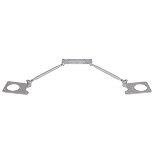 The tower export brace is the main component group of the system and is generally installed first if done in stages. Triangular bracing from the firewall to the top of the shock towers is created and eliminates distortion of the inner-fenderto-firewall attachment points. The adjustable length radius rods greatly simplify installation compared to single piece stamped or welded designs which may require additional work to achieve a proper fit. Access for engine maintenance simply requires removal of the button head fasteners securing the rod ends at each bracket. The firewall bracket utilizes four existing mounting holes along the firewall/cowl seam and requires three additional holes to be drilled through the firewall. An aluminum backup support plate is installed on the interior side of the firewall helping to distribute loads away from the mounting hardware. Shock tower plates use existing mounting locations and can be used with factory style suspension as well as our front coilover suspension system. Each plate features a shock absorber clearance hole allowing the shock crossbar and shaft to pass through. The factory shock mount then mounts on top of the aluminum plate. Radius rods are 6061-T6 aluminum tubing with left and righthand threads. Left-hand threads are indicated by a knurl near the end of the tube. The overall length of the assembly can be varied by rotating the tube enabling a custom fit for every application.