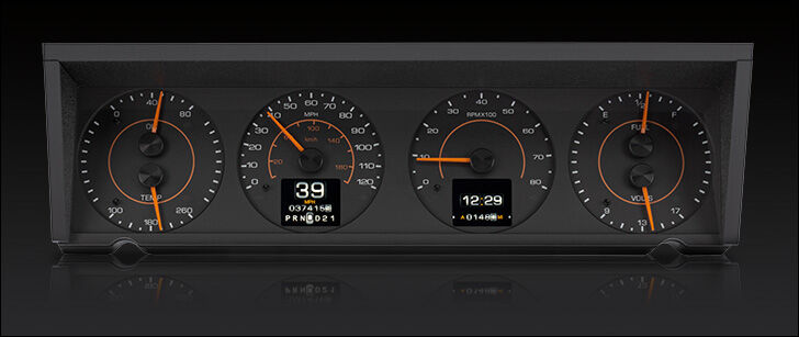 The Box Chevy is a great candidate for an understated stock theme! Direct bolt-in, color-changing backlighting, full-color digital screens and mobile-app compatibility are standard features, but a bit of wiring will be required to complete the conversion. Installation and setup are easy whether you have a stock drivetrain or LS-conversion; we have you covered!