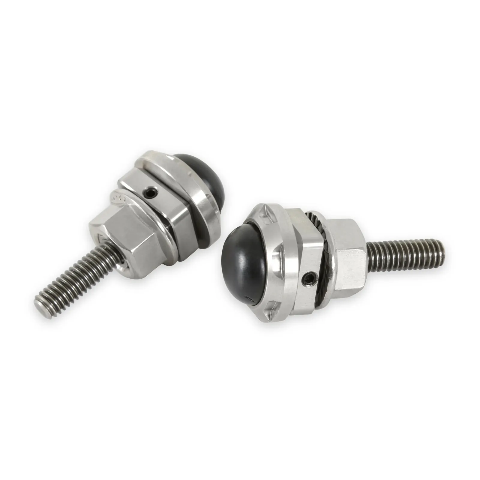 These high-quality hood bumpers are direct replacements for your original hood bumpers. They are crafted with machined stainless steel, soft rubber and are adjustable to ensure that your Fox Body or Capri hood will close precisely. Sold as a pair.