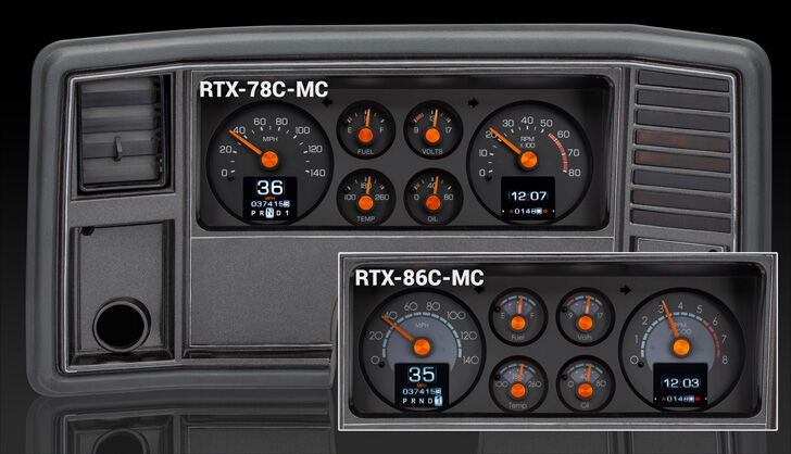 The RTX series is the latest from Dakota Digital, focused on retaining that stock look without sacrificing the late-model features you love. Every effort has been put forth to incorporate OEM design elements regarding the layout, face styling and indicators. A casual glance may dismiss these as original equipment, but once you hit the switch and the LED backlighting comes on in your favorite color scheme, all doubts will be removed.