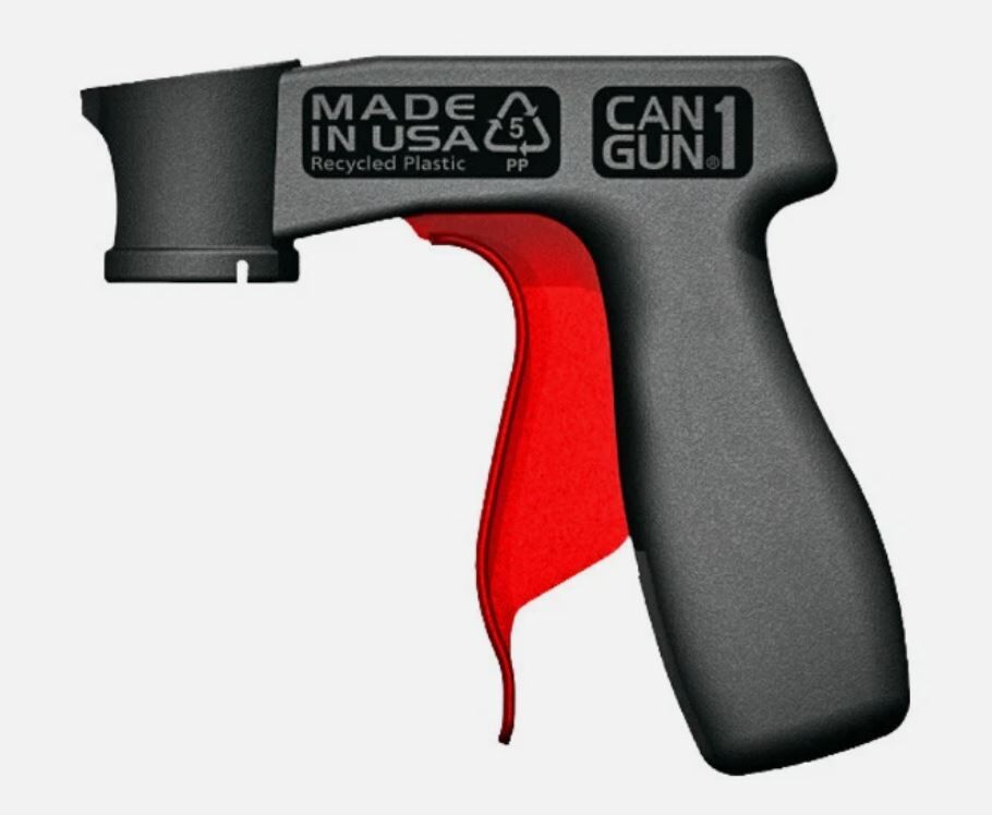 You are looking at an ergonomically designed Spray Can Holder with Trigger Grip. CANGUN is the revolutionary new, patented pistol grip spray can tool that easily snaps on to standard aerosol spray cans - transforming them into professional-style spray guns with unprecedented control, for hours of effortless, pain-free spraying. With a strong commitment to product quality and social and environmental responsibility these have been designed and manufactured in the USA with recycled, non-toxic plastic and zero waste, space optimized, recyclable packaging. This latest design, once again, takes advantage of the natural properties of polypropylene plastic to bring you the best spray can tool you can buy at any price. With over 25 years of experience in the paint and sundries marketplace, these have three key areas of spray can tool improvement: 1. World's first FullGrip spray can tool trigger offers hours offers fatigue-free spraying by providing 22X the surface area compared to a standard spray can valve's surface. 2. Double leverage action with exclusive internal design substantially reduces, on average, 10X less, the amount of force required to actuate the can's valve, thereby providing effortless spraying. 3. The FutureLock attachment ring makes attaching and removing CANGUN twice as easy and fits 100% of all standard spray cans.