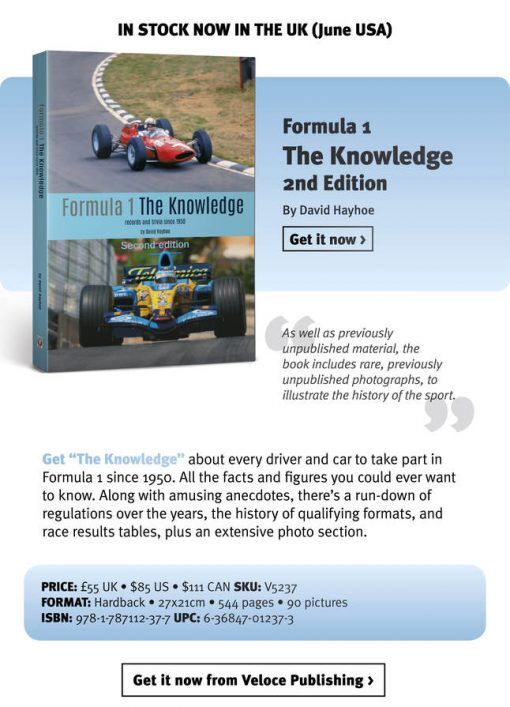 Providing you with "The Knowledge" about every driver and car to take part in Formula 1 since 1950, this book contains all the facts and figures you could ever want to know. Along with amusing anecdotes, there's a run-down of regulations over the years, the history of qualifying formats, and race results tables, plus an extensive photo section. Hardback26. 9 x 20. 8cm544 pagespictures