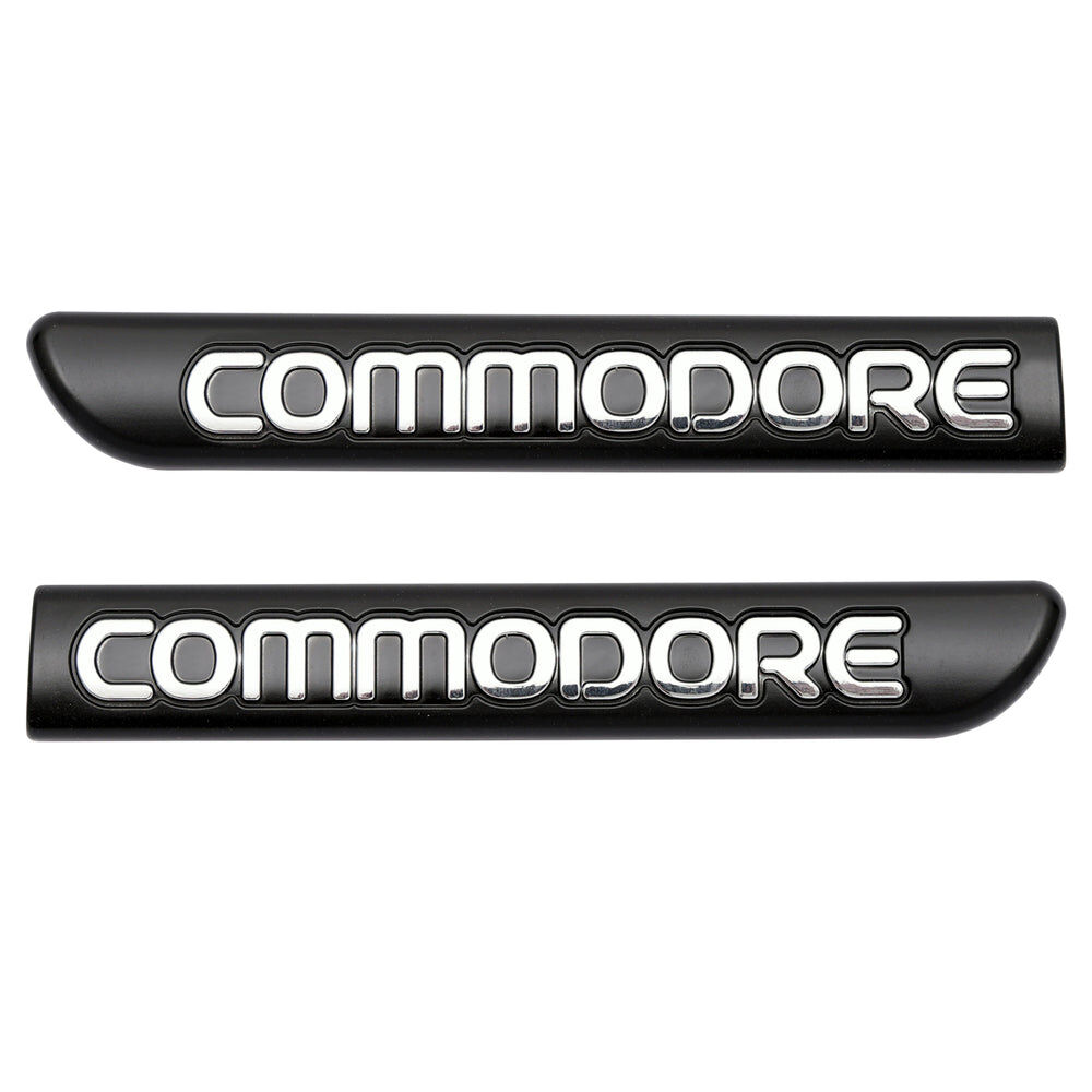 Commodore” Black Moulding with Chrome inlay badge, which goes on the front guard (fender) of the vehicle, this is a peel and stick type badge.