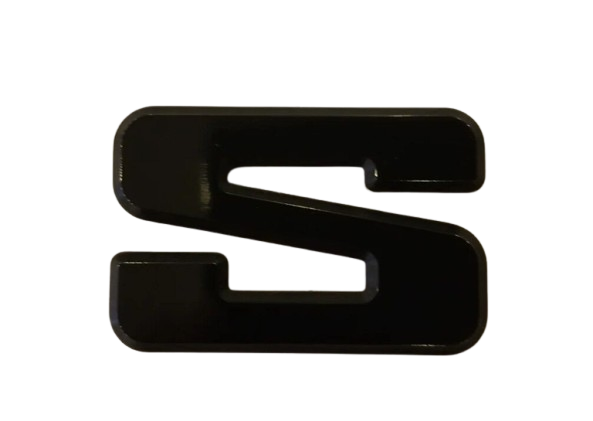 • "S" BLACK Plastic badge