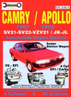 Camry and Apollo manual has in depth step by step instructions using hundreds of illustrations. Much of the information in this manual is not covered in any other publication. We have covered all the information the enthusiast needs from a grease and oil change to a full rebuild. Size: 200x275mm Pages: 432 ( many b&w photos)