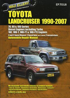 This Toyota Land cruiser Automobile Repair Manual covers Diesel Engines including Turbo. Covers the 70s, 80s, & 100s Series, 1Hz, 1HD-T, 1HD-FT, 1HD-FTE Engines. Includes restoration, specifications, electrical diagrams, tune-up, mechanical, bodywork, electronic diagnosis, maintenance, and repairs.