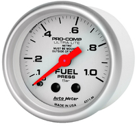 Seeing the exact fuel pressure on your vehicle can mean the difference between extracting the most performance safely and expensive failures. AutoMeter’s Mechanical Fuel Pressure Gauge will precisely measure your exact fuel pressure at levels of accuracy previously unheard of even in professional gauges. Designed for fuel injected or carbureted applications, a simple -4an connection makes installation easy. Don’t take chances with your investment; a precise fuel pressure gauge could be the cheapest insurance you’ve ever bought. For the safety of the operator, it is not recommended that Fuel Pressure gauge are installed inside the cabin of the vehicle. Optional fuel isolators are available for both carbureted and fuel injected applications.