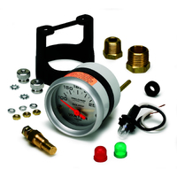 • Gauge kit includes 1/8” NPT temperature sender, 3/8” and 1/2" NPT adapters, bulb and socket assembly, red and green bulb covers, mounting hardware, and detailed instructions for installation