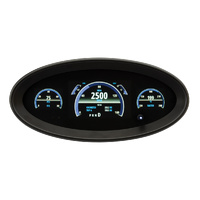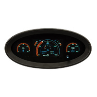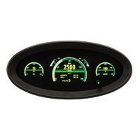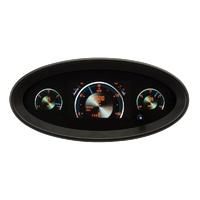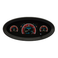 A graceful, billet aluminum front bezel is integrated with the 2 deep black powdercoated housing, making this a one-piece solution. Six simulated analog readings displayed in 3 TFT displays are encompassed in the 12" x 5.7" body (11.655 x 5.295 cutout), requiring two inches of clearance on the backside. Built-in rotary switch for streamlined installation, giving you the time you need to craft the perfect, one-off dashboard!