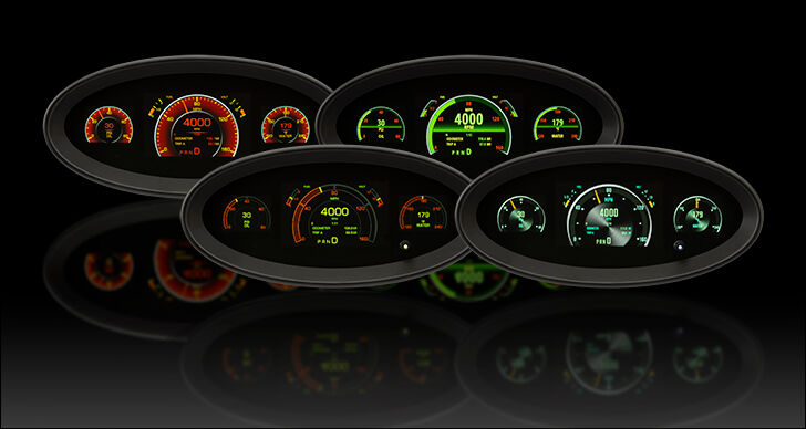 The Grafix Series allows the user to customize nearly every aspect of the instrument system. A variety of graphic themes can be selected, each element within can be further personalized with unique display colors and warning modes. Furthermore, each gauge location can be configured with an Analog, Digital, or Bar-graph style of readout. Each display can show readings singly, grouped in pairs for twice the visible data, or completely reconfigured to show a different readout entirely!