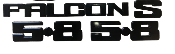 Falcon badge kit, beautiful Falcon, S & a pair of 5.8 emblems in black, with self adesive, ready to go.